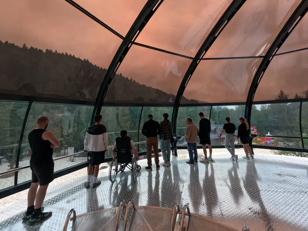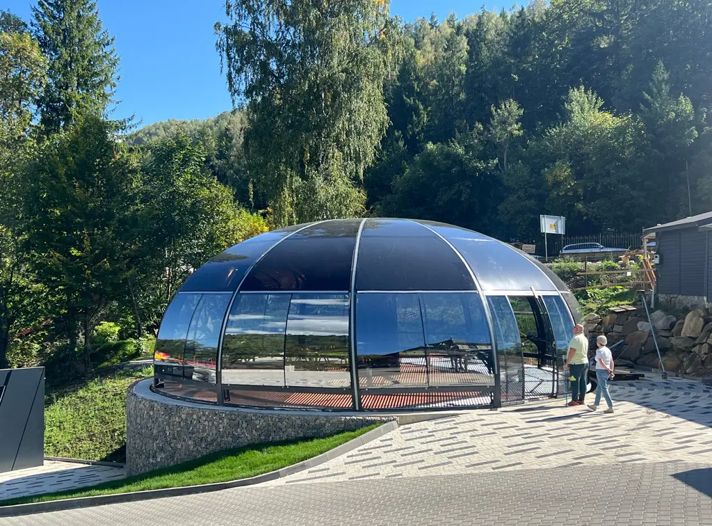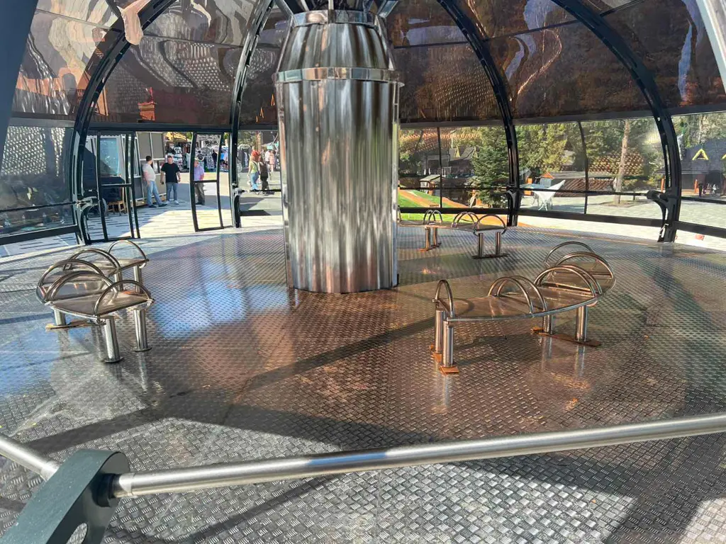 36-гранное сооружение, диаметром 20 м и высотой 7 м. Высота подъема капсулы, в которой на двух уровнях по периметру установлены два ряда кресел для 120 посетителей.