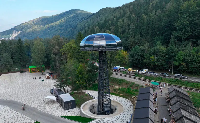 Конструкция состоит из поднимающейся мачты, имеющей гидравлический привод и смотровой площадки (капсулы), вместительностью до 120 человек, которая, может вращаться вокруг своей оси и подниматься на высоту до 70 метров.